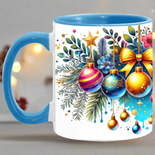 Festive Watercolor Christmas Ornaments Accent Mug - 11oz