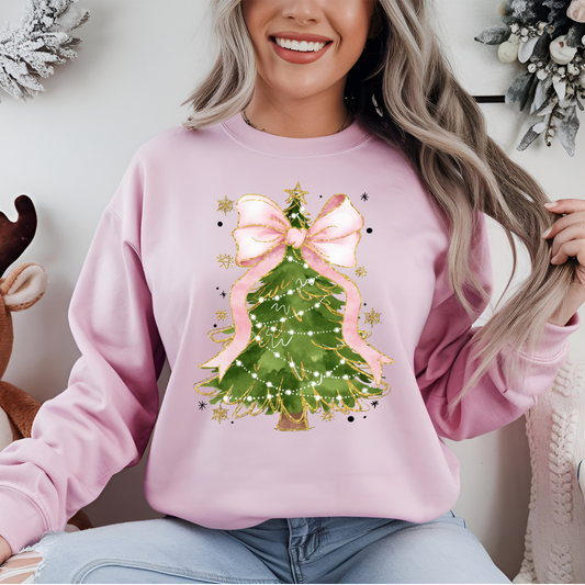 Christmas Tree Bow Shirt - Festive Coquette Christmas Sweatshirt for Women