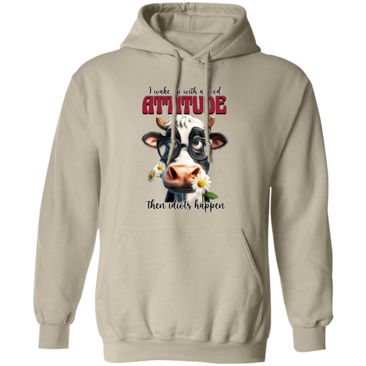 I Wake Up with a Good Attitude, Then Idiots Happen" Cow Sweatshirt & Hoodie