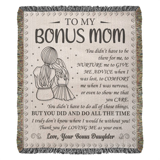 Bonus "To My Bonus Mom" Woven Blanket – Heartfelt Gift from Bonus Daughter