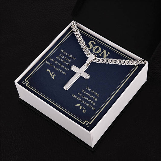To My Son - Artisan Cross Cuban Chain Necklace with Personalization