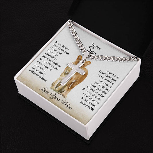 Son, I will Always Have Your Back , From Mom | Cuban Chain With Artisan Cross Necklace