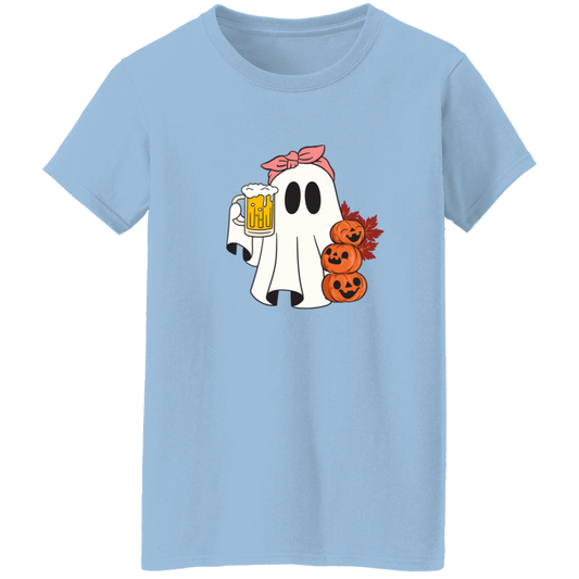 Spooky Beer Ghost Ladies T-Shirt | Cute Halloween Ghost