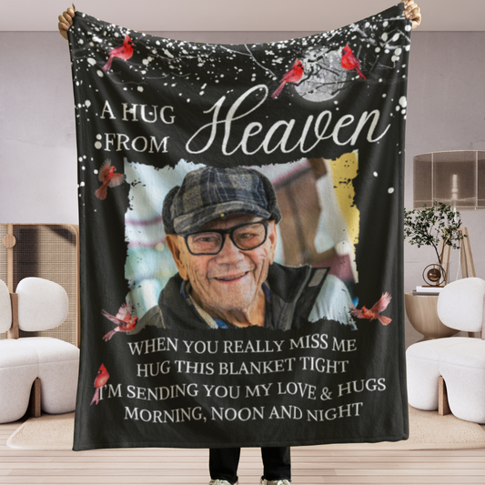 Custom Photo A Hug From Heaven - Memorial Personalized Custom Blanket - Christmas Gift, Sympathy Gift For Family Members