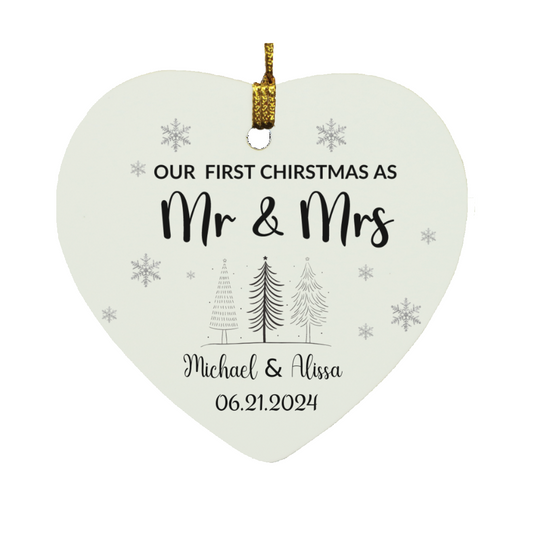 Our First Christmas as Mr. and Mrs. Heart Ornament - Personalized Holiday Keepsake